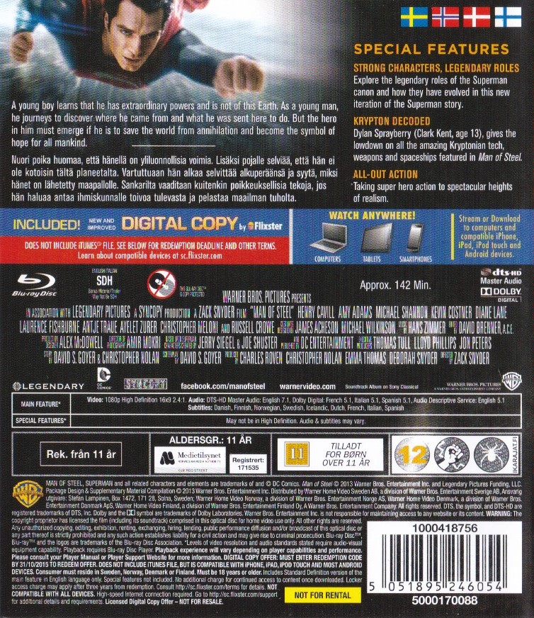Undertexter: Danska, Finska, Norska, Svenska, Isländska, Holländska, Franska, Italienska, Spanska