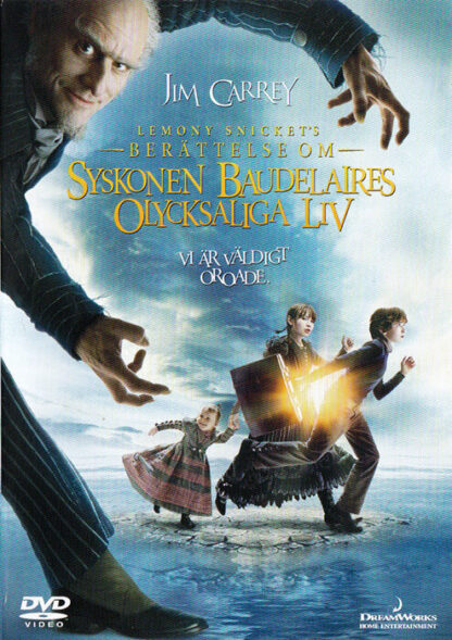 Den här filmen är väldigt skrämmande, ett uttryck som i det här sammanhanget betyder ”ett spännande och olyckshädande äventyr med tre påhittiga, föräldralösa barn och en ondskefull skådespelare vid namn greve Olaf (Carrey) som vill lägga vantarna på deras stora förmögenhet.”