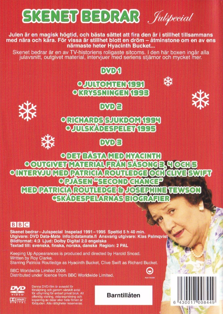 Skenet bedrar är en av TV-historiens roligaste sitcoms. I den här boxen ingår alla julavsnitt, outgivet material, intervjuer med seriens stjärnor och mycket mer.