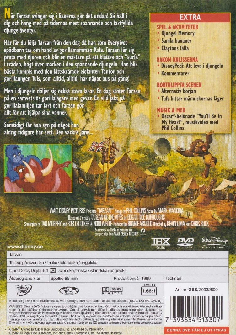 Här får du följa Tarzan från den dag då han som övergivet spädbarn tas om hand av gorillamamman Kala. Tarzan lär sig prata med djuren och blir en mästare på att klättra och ”surfa” i träden, högt över marken i den spännande djungeln. Han blir bästa kompis med den lättskrämde elefanten Tantor och gorillaungen Tufs, som alltid, alltid, har något bus på gång!
