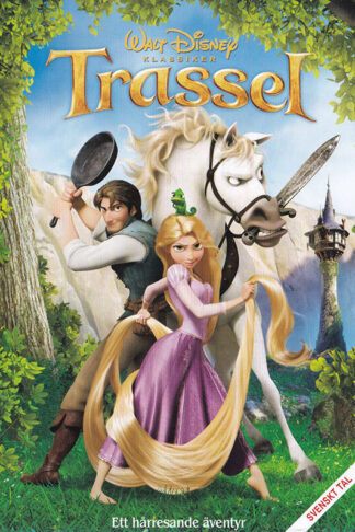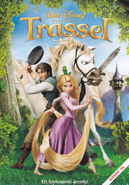 Flickan Rapunzel sitter fast i sitt fängelsetorn, men med hjälp av sitt över 20 meter långa, magiska, gyllene hår och en charmig bandit lyckas hon fly.