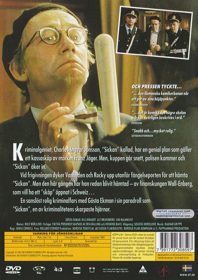Kriminalgeniet Charles-Ingvar, Sickan kallad, har en genial plan som gäller ett kassaskåp av märket Franz Jäger. Men kuppen går snett, polisen kommer och Sickan åker in. Vid frigivningen dyker Vanheden och Rocky upp utanför fängelseporten för att hämta Sickan. Men han har redan blivit hämtad – av finanskungen Wall-Enberg, som vill ha ett ”skåp” öppnat i Schweiz…