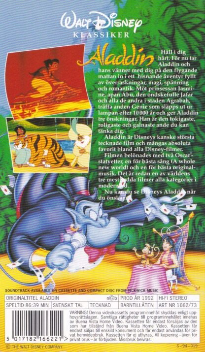 Sultanens vackra dotter, prinsessan Jasmine, har allt man kan tänka sig. Utom frihet. En natt rymmer hon från palatset och träffar den fattige men godhjärtade pojken Aladdin. Innan de vet ordet av är de förälskade i varandra.