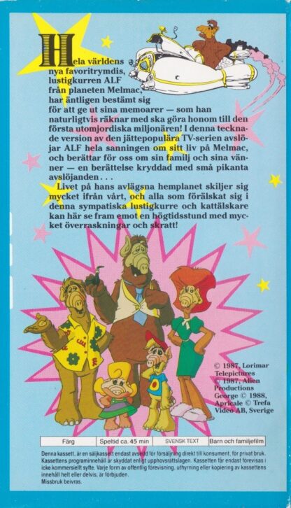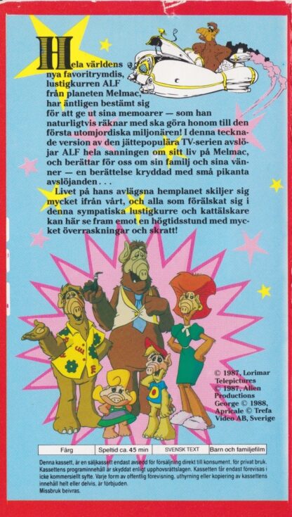 I denna tecknade version av den jättepopulära TV-serien, avslöjar ALF hela sanningen om sitt liv på Melmac, och berättar för oss om sin familj och sina vänner. En berättelse kryddad med små pikanta avslöjanden… Livet på hans avlägsna hemplanet skiljer sig mycket ifrån vårt, och alla som förälskat sig i denna sympatiska lustigkurre och kattälskare kan här se fram emot en högtidsstund med mycket överraskningar och skratt!