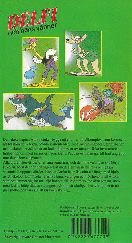 Alla djuren återvänder efter sina semestrar, och den lille valungen ska börja i skolan. Men det har han ingen lust med. Han vill hellre leka och gå på spännande upptäcks färder. Kapten Ättika letar fiskstim att fånga med hjälp av ett ekolod. Dom båda hajarna fångar valungen och för honom till Ättika, som bestämmer sig för att sälja honom till en djurpark för dyra pengar, men med Delfis hjälp räddas valungen, och förstår slutligen hur viktigt det är att gå i skolan och lära sig att läsa och skriva…