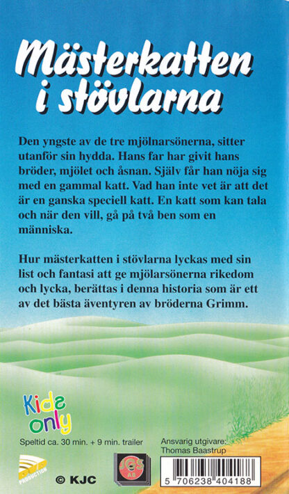 Den yngste av de tre mjölnarsönerna, sitter utanför sin hydda. Hans far har givit hans bröder, mjölet och åsnan. Själv får han nöja sig med en gammal katt. Vad han inte vet är att det är en ganska speciell katt. En katt som kan tala och när den vill, gå på två ben som en