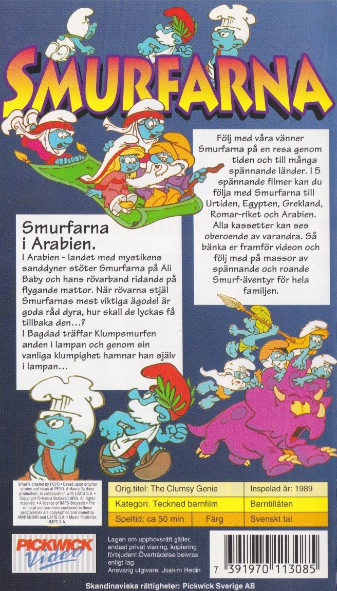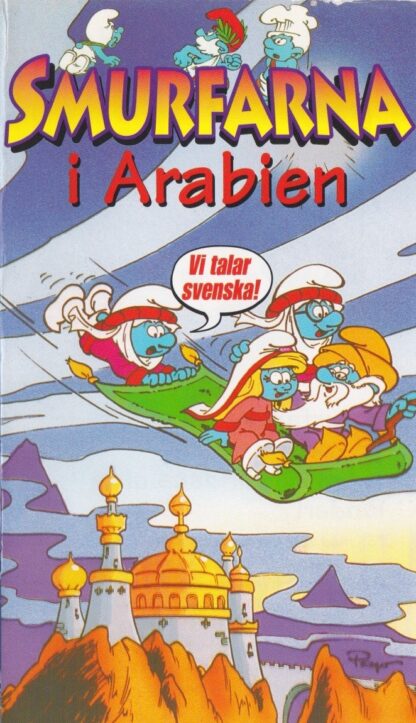 I Arabien landet med mystikens sanddyner stöter Smurfarna på Ali Baby och hans rövarband ridande på flygande mattor.