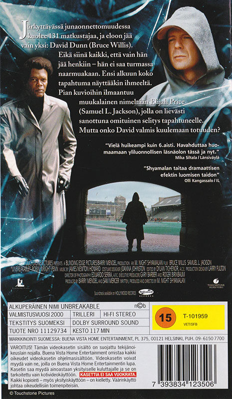 Efter en fruktansvärd tågolycka med 131 döda återfinns bara en enda överlevande, David Dunne. Elijah Price är en mystisk främling som har en bisarr förklaring till varför David överlever tågolyckan utan en skråma, en förklaring som hotar att för alltid förändra livet för David och hans familj.