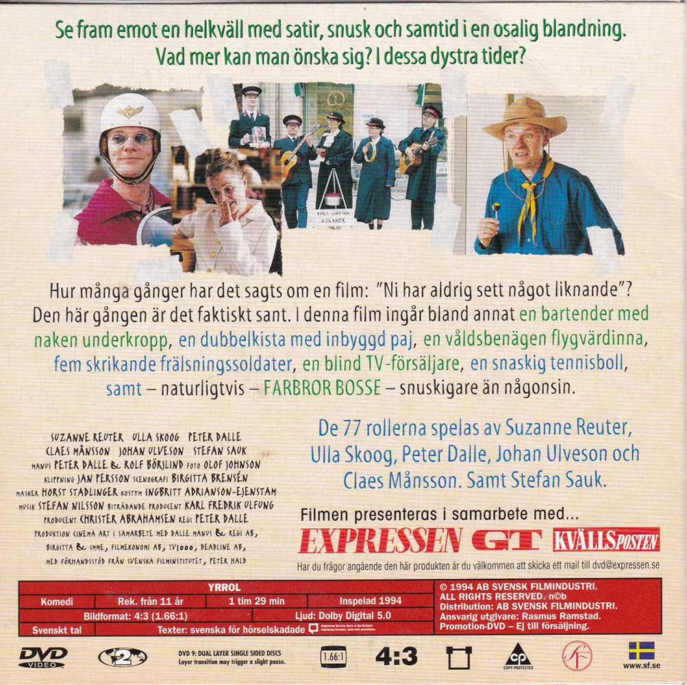 Hur många gånger har det sagts om en film: ”Ni har aldrig sett något liknande”? Den här gången är det faktiskt sant. I denna film ingår bland annat en bartender med naken underkropp, en dubbelkista med inbyggd paj, en våldsbenägen flygvärdinna, fem skrikande frälsningssoldater, en blind TV-försäljare, en snaskig tennisboll, samt-naturligtvis – FARBROR BOSSE – snuskigare än någonsin.